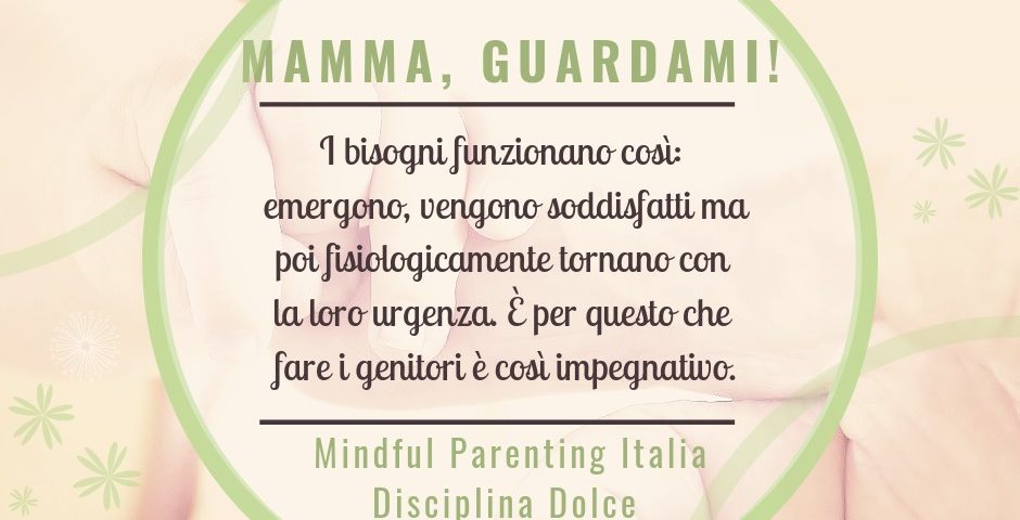I bisogni funzionano così: emergono, vengono soddisfatti ma poi fisiologicamente tornano con la loro urgenza. È per questo che fare i genitori è così impegnativo :) Spegnere un bisogno è impossibile, l'unica cosa che possiamo spegnere è l'espressione di quel bisogno, ma questo rimarrà vivo internamente, un fuoco pulsante che divora e non dà tregua, ed è così sia per i grandi che per i piccini.